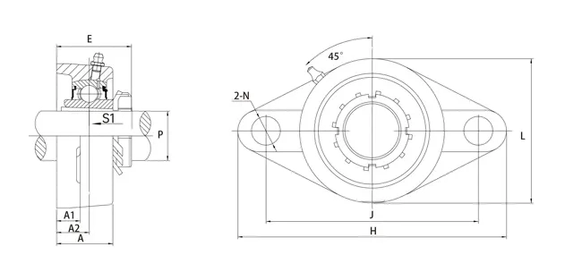 The outer diameter of the bearing and the inner diameter of the bearing seat are spherical, and there is an automatic centering function between the two, which can compensate for the misalignment of the axis and deformation of the installation bottom caused by installation errors.